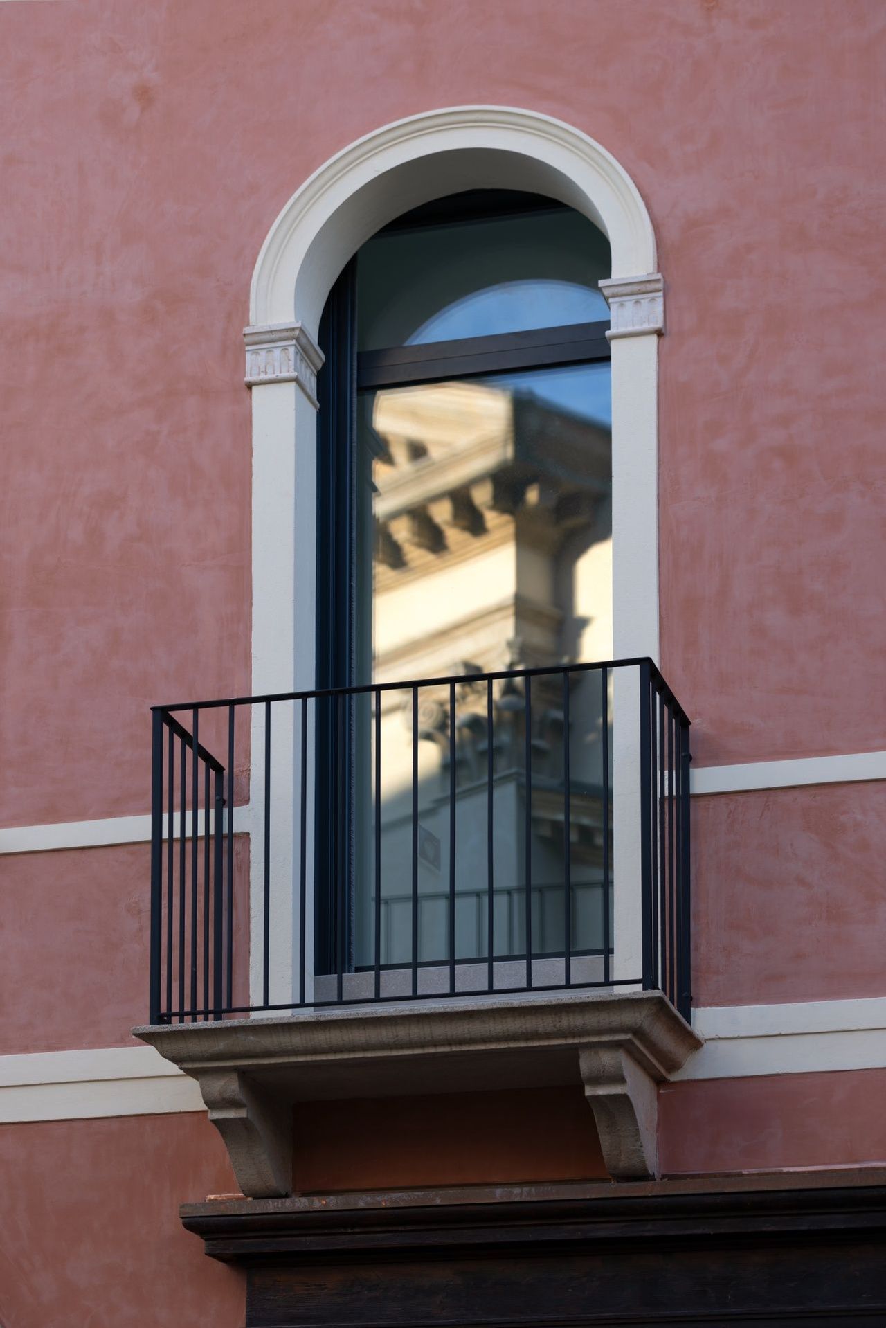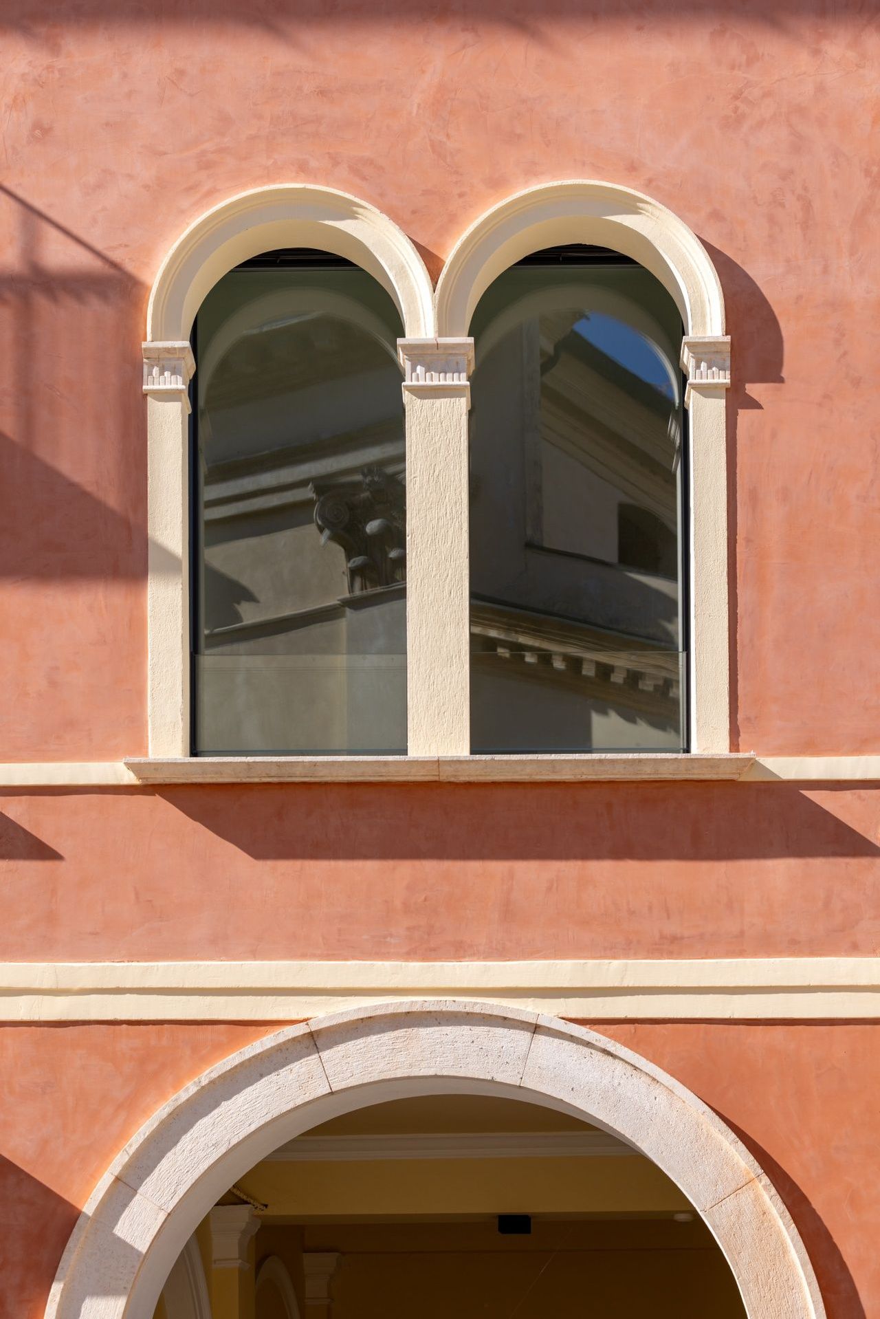 Le aperture ad arco, elemento distintivo del prospetto, diventano il punto di incontro tra tradizione e innovazione: la pulizia delle nuove linee si accosta alla matericità storica, creando un dialogo coerente e misurato.