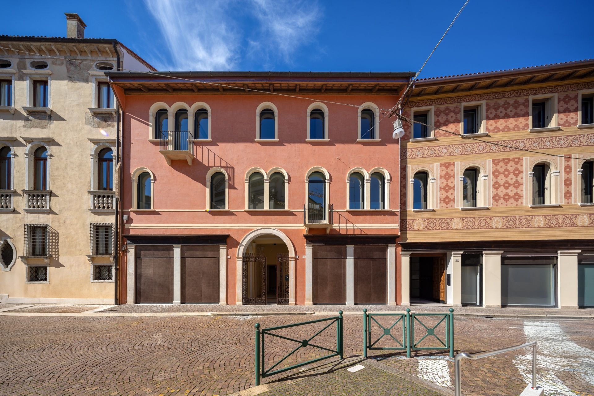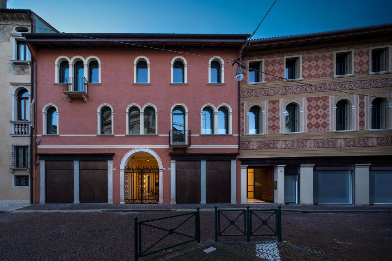 Ca’ Sant’Andrea, realizzato insieme a Cazzaro Costruzioni, è un intervento di riqualificazione che restituisce valore e continuità a un edificio storico affacciato sulla città. Il progetto nasce dal rispetto dell’impianto originario e dalla volontà di preservarne il carattere architettonico, fatto di facciate scandite da aperture ad arco, cornici in pietra e superfici decorate che raccontano una memoria stratificata nel tempo.
